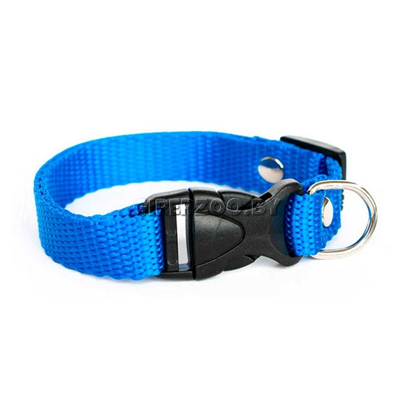 Ошейник для собак выполнен из высококачественного особо плотного капрона. Очень прочный при натяжении. Застежка изготовлена из пластика. Ремешок плавно регулируется под размер Вашего питомца. Цвет: синий. Материал: нейлон, пластик, металлическое кольцо. Ширина: 20 мм. Обхват: 30-50 см.
