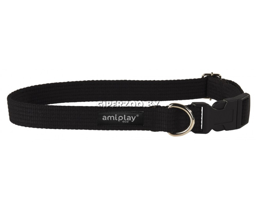 Ошейник регулируемый длясредних собак и щенков крупных размеров, застежка фастекс-трезубец. Сварное полукольцо для крепления карабина. Предназначен для повседневного использования. Материал 100%хлопок, не твердеет при намокании, не окрашивает шерсть, приятный к телу животного. Цвет: черный. Гарантия 3 года. Произведено в Польше.