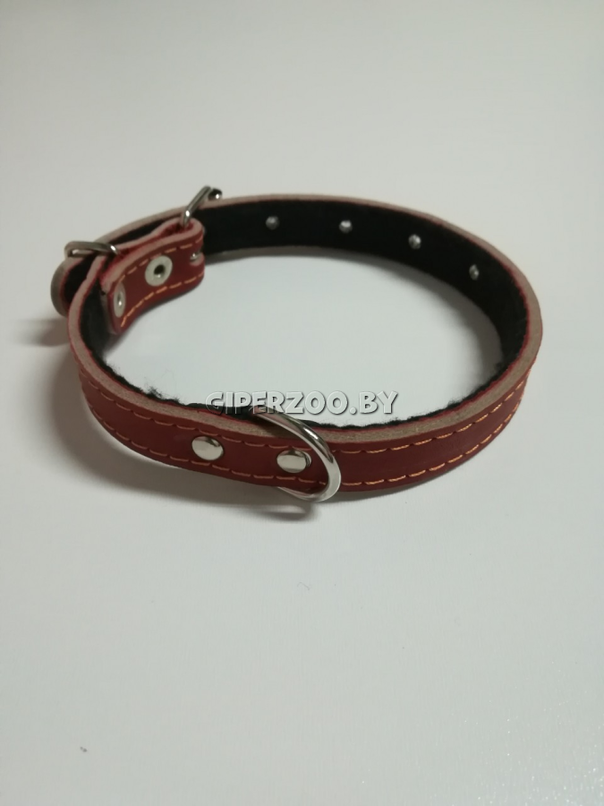 Ошейник кожаный, полукольцо посередине подшитый фетром, 20 мм, РБ