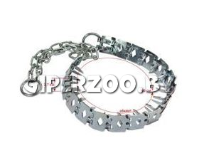 Ошейник из металлических пластин шириной 27мм с загнутыми со стороны шеи собаки шипами высотой 1см. Детали ошейника оцинкованные. Рассчитан на собак с обхватом шеи 60см.