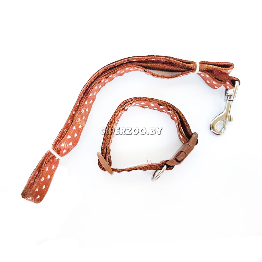 Комплект ошейник и поводок For friends "Hearts" коричневый S