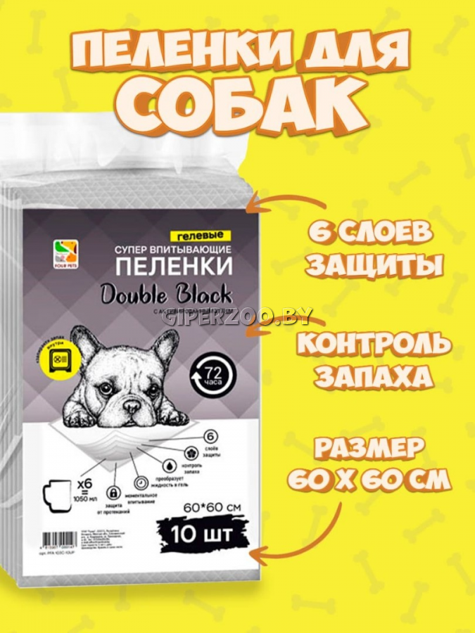 Пеленки для собак с углем 60х60см, 10 шт, упаковка, Китай
