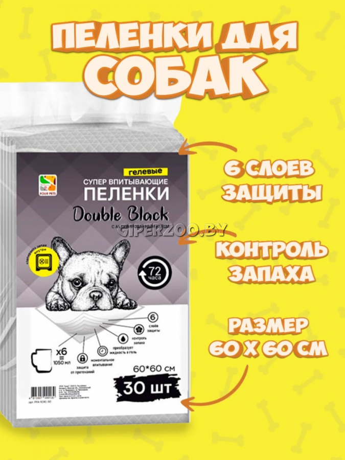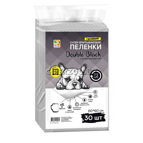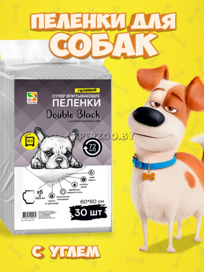 Пеленки для собак с активированным углем 60х60см., упаковка 30шт., Китай.