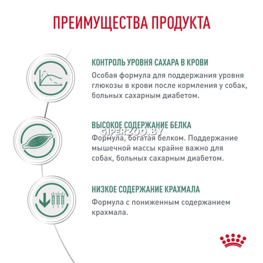 ROYAL CANIN® DIABETIC, 12 кг – полнорационный диетический корм для собак, разработанный для контроля уровня глюкозы при сахарном диабете. Корм с пониженным содержанием быстроусвояемых углeводов.