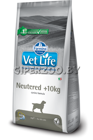Farmina Vet Life Dog Neutered +10 kg, 12 кг - полнорационное и сбалансированное питание для взрослых кастрированных или стерилизованных собак весом более 10кг для контроля веса и профилактики развития мочекаменной болезни.