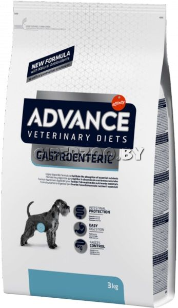 Диетический продукт для щенков и взрослых собак, приготовленный с высокоусвояемыми ингредиентами, низким содержанием жира и увеличенной долей натрия и калия для помощи в облегчении определенных проблем с желудочно-кишечным трактом и содействия в случаях недостаточности экзокринной функции поджелудочной железы. Аналитический состав: белок 25,5%, жиры 12,75%, сырые волокна 1,3%, неорганические вещества 7%, натрий 0,35%, калий 0,7%, глутаминовая кислота 4,6%.