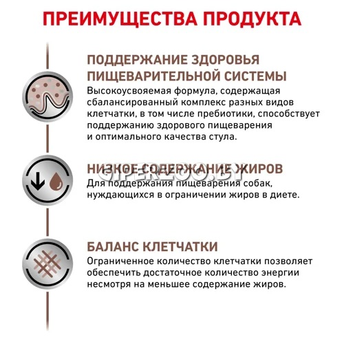 Royal Canin Gastrointestinal Low Fat Small Dog, 1кг – полнорационный диетический корм для собак мелких пород с нарушениями пищеварения, способствующий регуляции метаболизма липидов при гиперлипидемии.