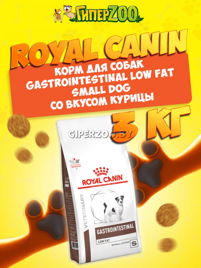 Royal Canin Gastrointestinal Low Fat Small Dog, 3 кг – полнорационный диетический корм для собак мелких пород с нарушениями пищеварения, способствующий регуляции метаболизма липидов при гиперлипидемии.