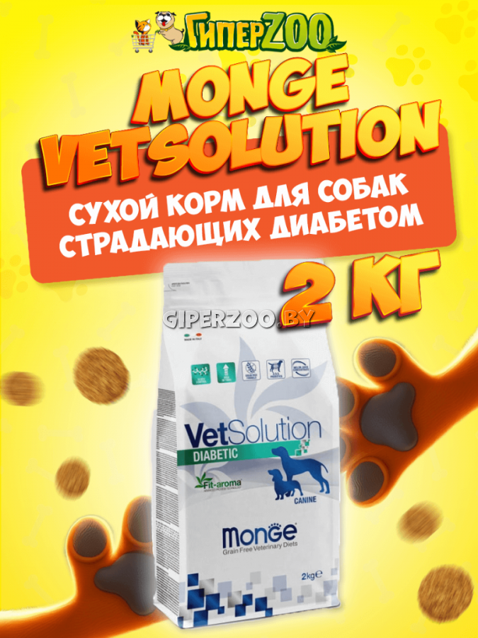 Monge VetSolution Diabetic Dog, 2 кг - сухой полнорационный корм  для собак, страдающих сахарным диабетом.
