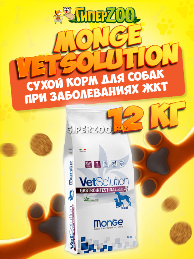Monge VetSolution Gastrointestinal Dog, 12 кг - корм сухой, полнорационный,  диетический для собак с гастроэнтерологическими патологиями.