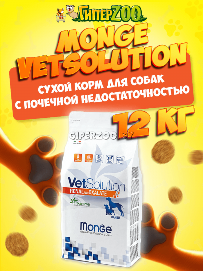 Monge VetSolution Renal and Oxalate Dog, 12 кг - это полноценный диетический корм для собак, разработанный для поддержки функции почек в случаях хронической или временной почечной недостаточности.
