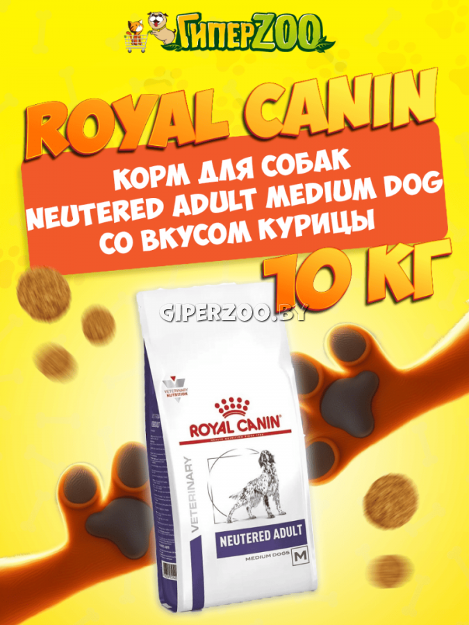 Royal Canin Neutered Adult, 10 кг - корм сухой для кастрированных собак средних размеров, вес взрослой собаки 11-25 кг.