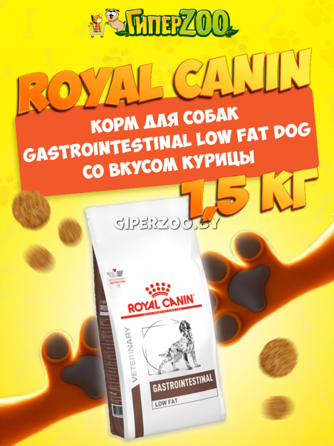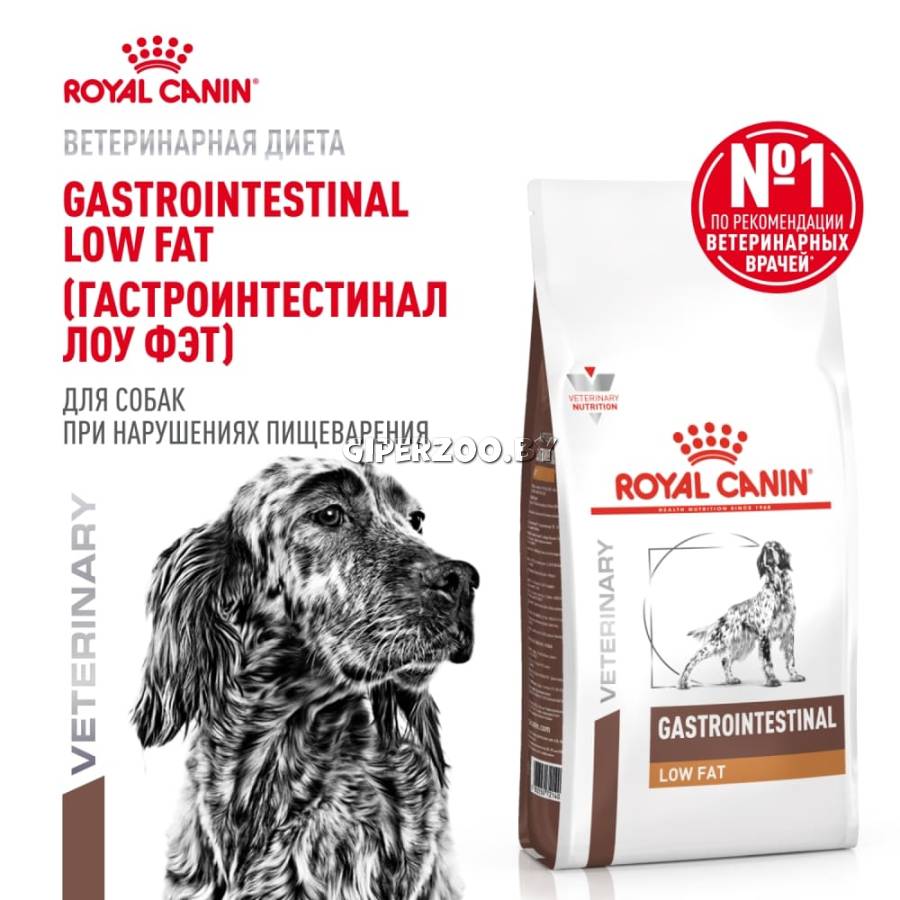 Royal Canin Gastrointestinal Low Fat, 1,5 кг - диета с ограниченным содержанием жиров для собак при нарушении пищеварения.