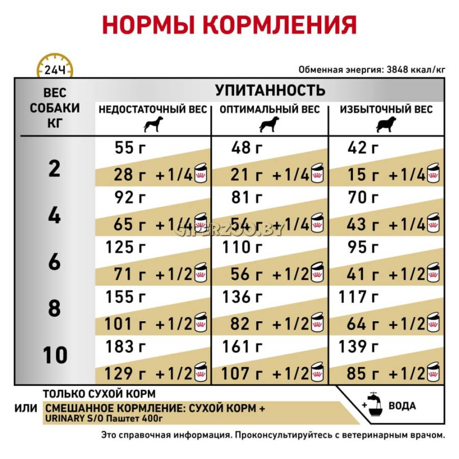 Данный рацион подходит взрослым собакам весом до 10 кг, у которых нормально функционируют почки.