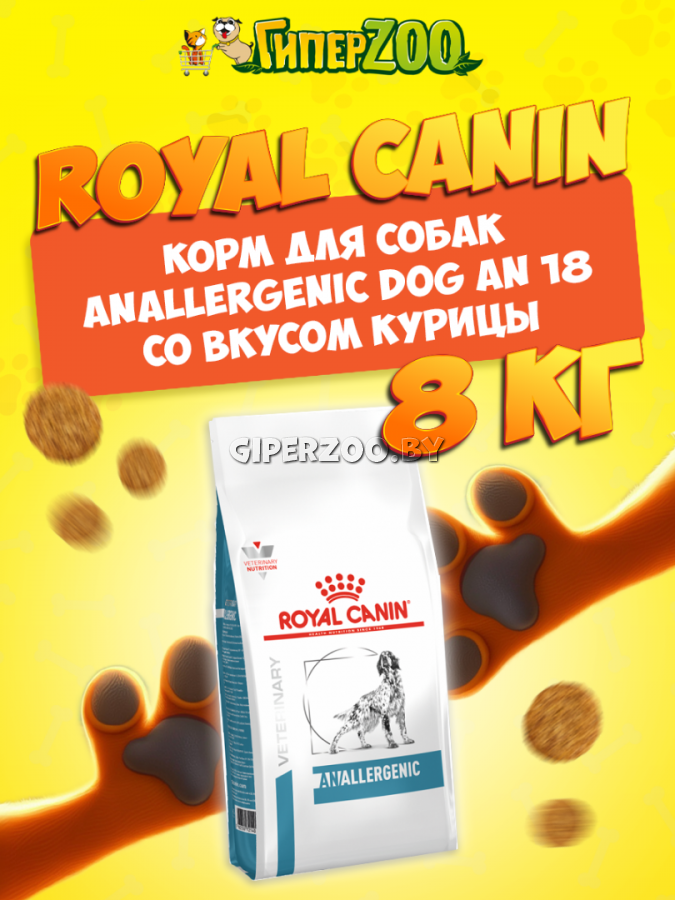 Royal Canin Anallergenic, 8 кг — полнорационный диетический корм для собак, применяемый при пищевой аллергии или пищевой непереносимости некоторых ингредиентов.