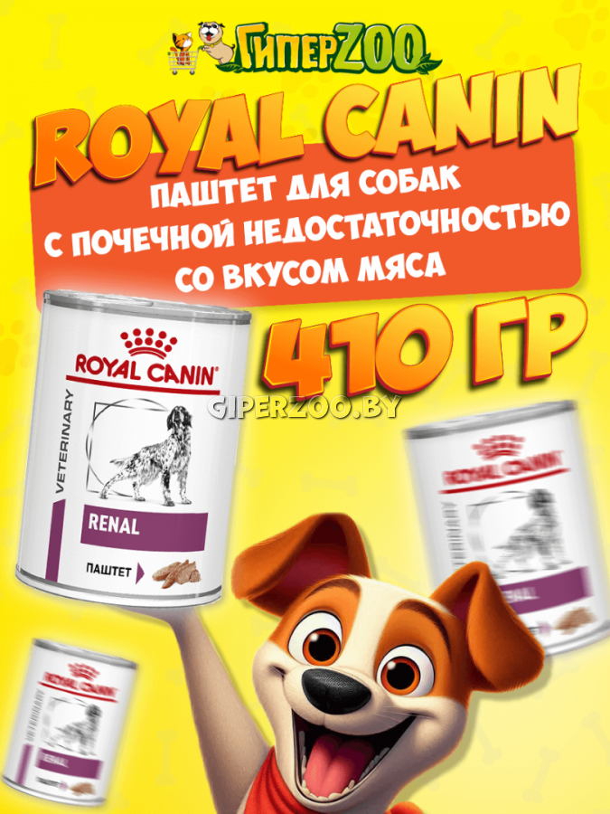 Royal Canin Renal (паштет), 410 гр - корм консервированный полнорационный диетический для взрослых собак, предназначенный для поддержания функции почек при острой или хронической почечной недостаточности.