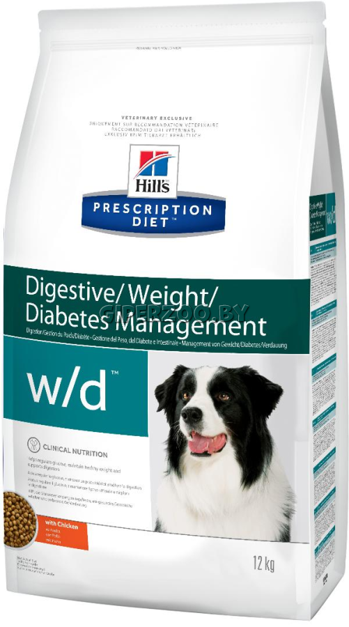 Hill's Prescription Diet w/d Digestive/Weight Management, 12 кг - это сбалансированный корм, рассчитанный на борьбу с лишним весом и поддержку правильной работы желудочно-кишечного тракта у собаки.