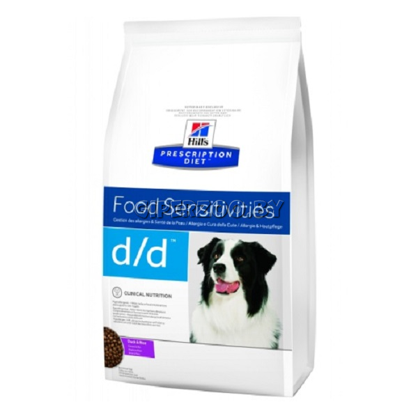 Hill's Prescription Diet d/d Food Sensitivities разработан для поддержания здоровья собак при кожных реакциях и рвоте/диарее в случае аллергии.