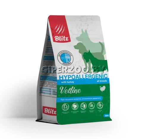 Blitz Dog Vetline Hypoallergenic (индейка), 500 гр – сухой полнорационный диетический корм для собак при аллергии и атопическом дерматите.