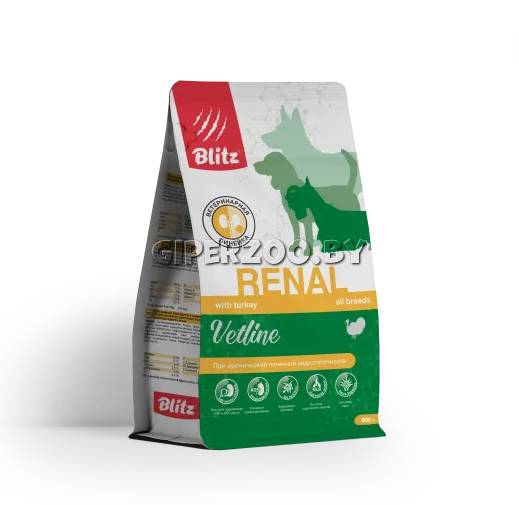 Blitz Dog Vetline Renal (индейка), 500 гр – сухой полнорационный диетический корм для собак при аллергии и атопическом дерматите.