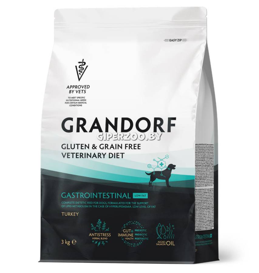 Формула на основе бескостной индейки. Обеспечивает максимальную защиту пищеварительной системы благодаря высокоусвояемым ингредиентам, комплексу антиаксидантов, пре / про и постбиотикам. Низкое содержание жиров улучшает пищеварительную функцию у собак, страдающих острым панкреатитом или гиперлипидемией.