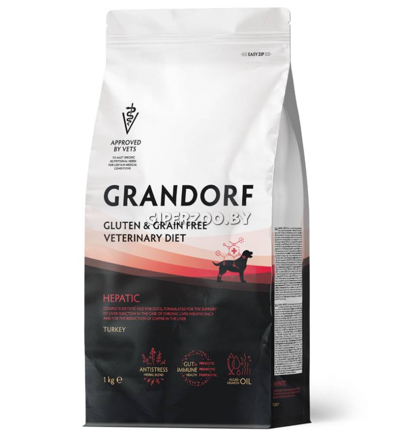 Полнорационный диетический сухой корм для собак, предназначенный для поддержания функции печени при хронической печеночной недостаточности и при избыточном накоплении меди в печени.