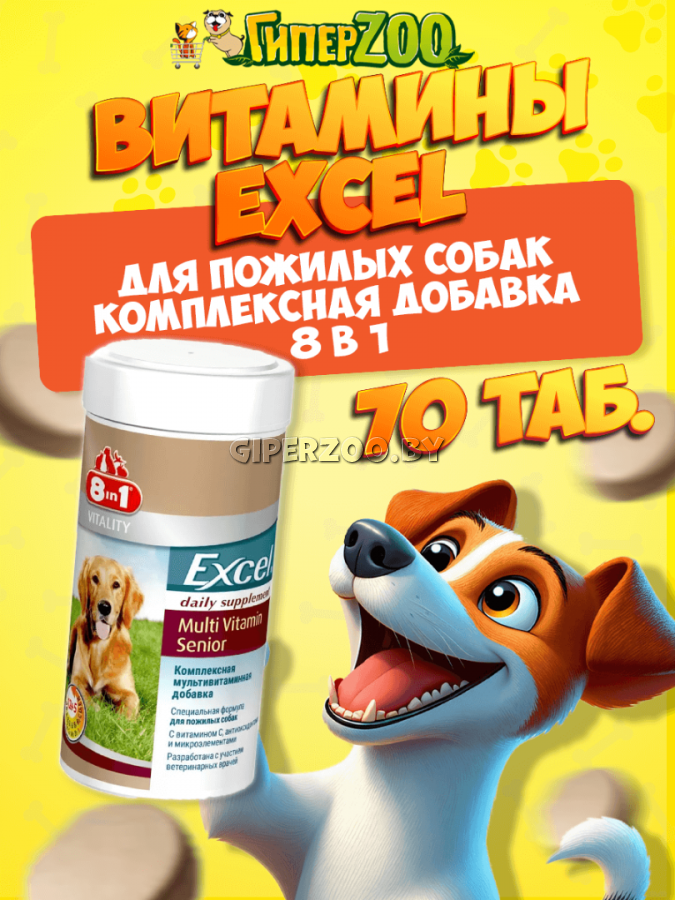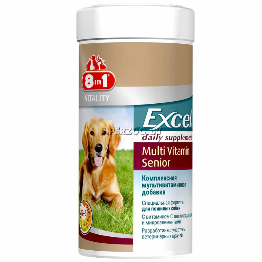 Витамины для собак 8in1 Excel Multi Vit-Senior, 70 таб - мультивитаминная добавка для пожилых собак с витаминами и микроэлементами, помогает предотвратить проблемы, связанные с дефицитом питательных веществ в рационе.