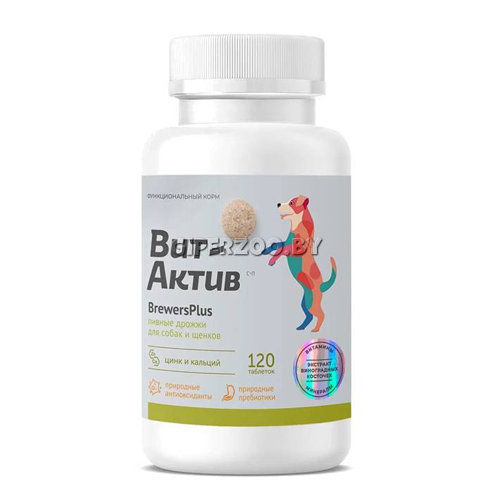 Вит-Актив Brewers Plus. Пивные дрожжи для собак и щенков, 120 таблеток. Вит-Актив Brewers Plus – витаминно-минеральный комплекс для улучшения состояния кожно-шерстного покрова, обеспечения физиологических потребностей собак в витаминах, аминокислотах и минеральных веществах, обогащения рациона природными антиоксидантами и пребиотиками.