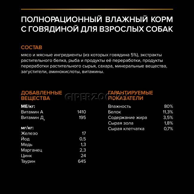 • Влажный корм для собак PRO PLAN не содержит искусственных красителей