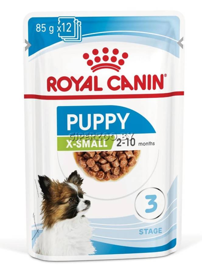 Икс-смол Паппи: корм консервированный полнорационный для щенков собак миниатюрных размеров в возрасте от 2 до 10 месяцев. Способствует здоровью пищеварительной системы щенка Отвечает высоким энергетическим потребностям в период развития Поддерживает неокрепшую иммунную систему щенка. Период роста – важная стадия жизни щенка. Это время больших перемен и новых открытий. Поэтому в раннем возрасте важно обеспечить щенка рационом, который дополнительно поддержит его развитие. Продукт «ROYAL CANIN® X-Small Puppy кусочки в соусе» для щенков собак миниатюрных пород в возрасте от 2 до 10 месяцев разработан с учетом их особых потребностей в питательных веществах. В состав рациона «ROYAL CANIN® X-Small Puppy кусочки в соусе» входит эксклюзивный комплекс антиоксидантов, включая витамин E, необходимый для укрепления иммунной системы в период ее формирования. ROYAL CANIN® X-Small Puppy кусочки в соусе также обогащен комплексом питательных веществ, способствующий здоровью пищеварительной системы.