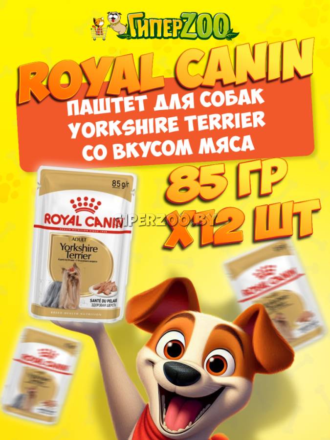 Royal Canin YORKSHIRE TERRIER (паштет), 85 гр*12 шт - предназначенный для собак породы йоркширский терьер в возрасте от 10 месяцев, специально разработан с учетом потребностей вашей взрослой собаки в питательных веществах.