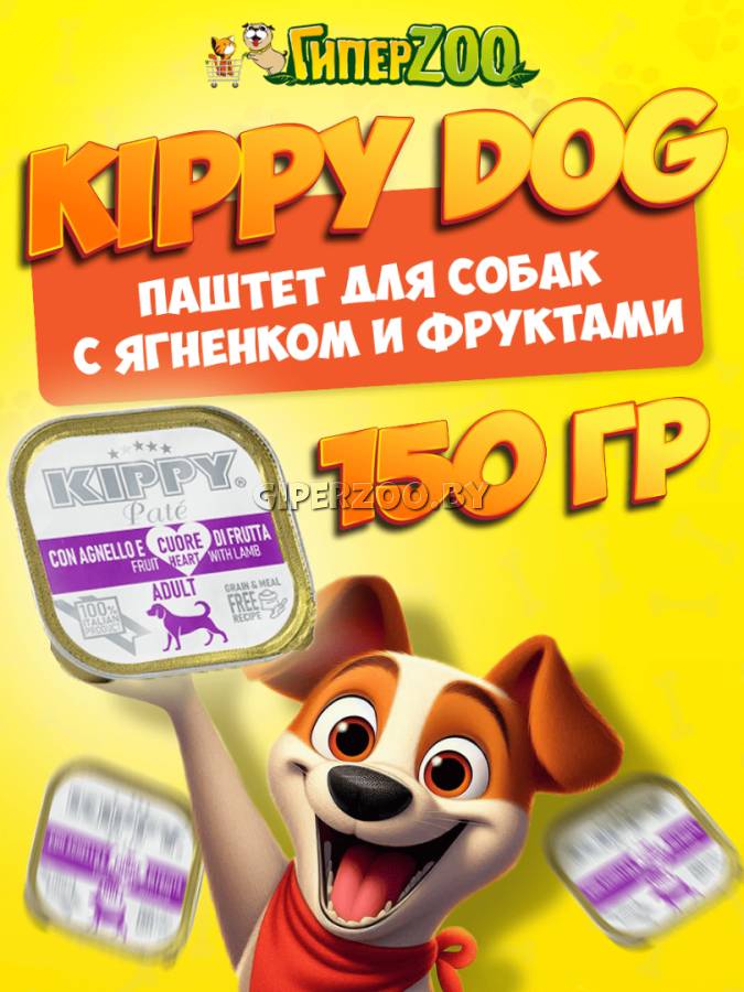 Kippy Pate Dog Паштет с ягненком и фруктами — консервированный корм суперпремиум класса, который изготовлен на основе мяса ягненка и дополнен фруктами. Корм может полностью удовлетворить все потребности питания собаки, или может служить вкусным угощением. Главным источником белка выступает диетическое мясо ягненка, которое обеспечивает собаку необходимым количеством белка и протеинов, для поддержания энергии в течение дня.