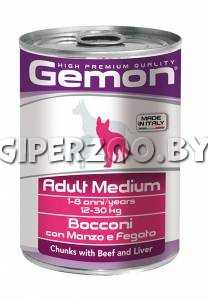 Gemon Dog Medium Adult Beef/Liver, 415 гр - полноценный консервированный корм для собак с кусочками говядины и печени.