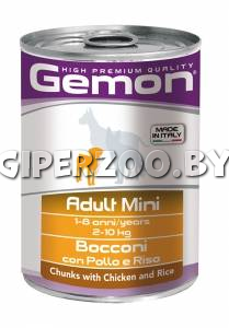 Gemon Dog Mini Adult Chicken/Rice, 415 гр - полноценный, сбалансированный консервированный корм для собак с кусочками курицы и рисом.