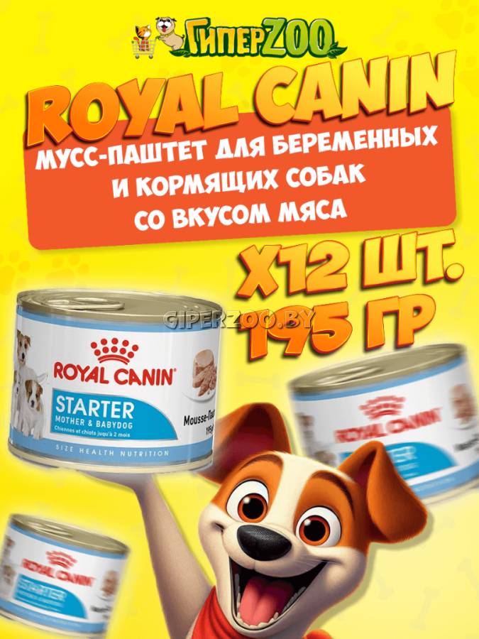 Royal Canin Starter Mother & Babydog (мусс-паштет), 195 гр*12 шт - корм консервированный полнорационный для беременных и кормящих собак, а также щенков до 2-х месячного возраста.