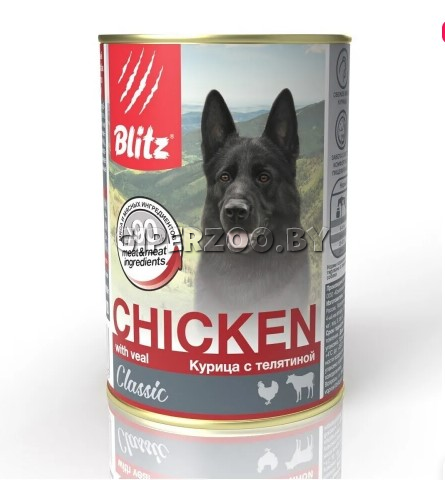 Blitz Classic Dog Chicken & Veal Minced (курица, телятина), 400 гр - влажный корм для собак всех пород и возрастов.