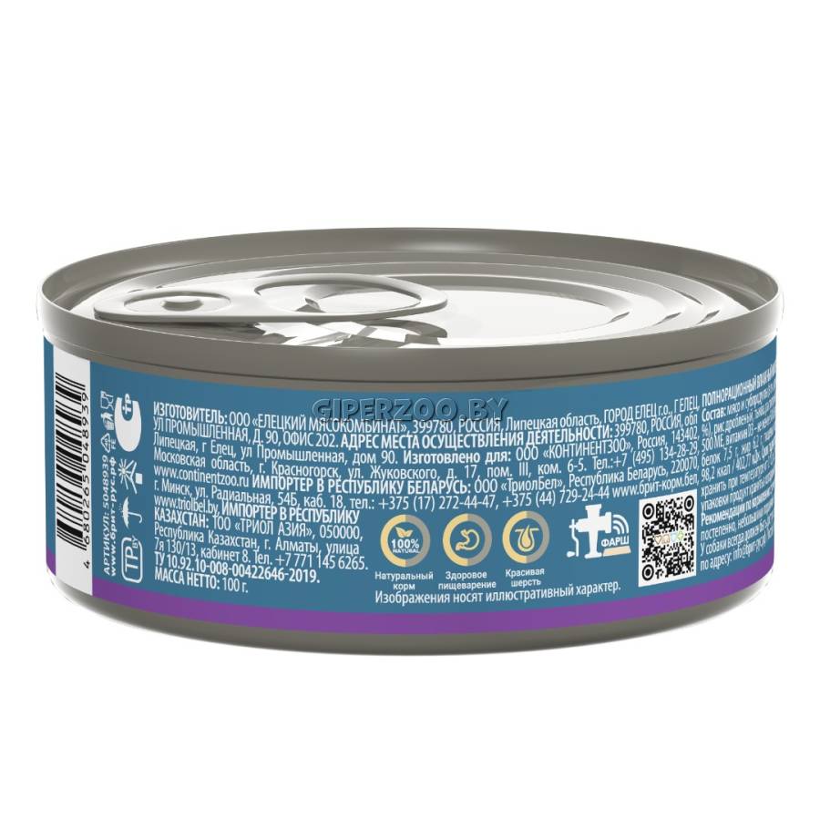 - Консервированный корм содержит все необходимые витамины и минералы, которые требуются для ежедневного питания.