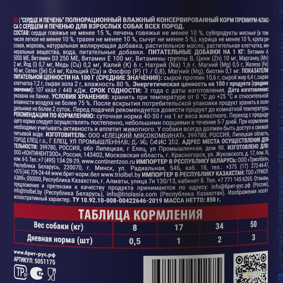Брит Премиум Консервы для взрослых собак всех пород с сердцем и печенью Dog Adult (Brit Premium) - натуральный сбалансированный корм для полноценного рациона вашего питомца.
