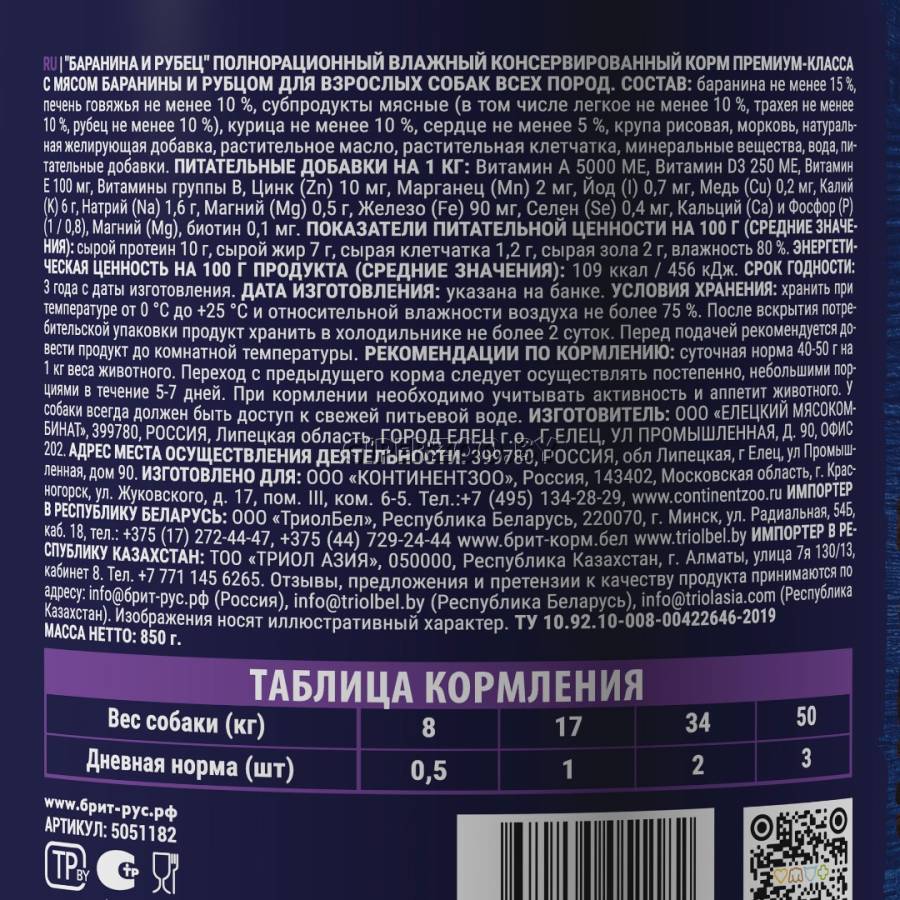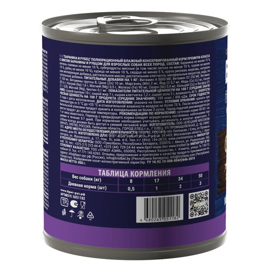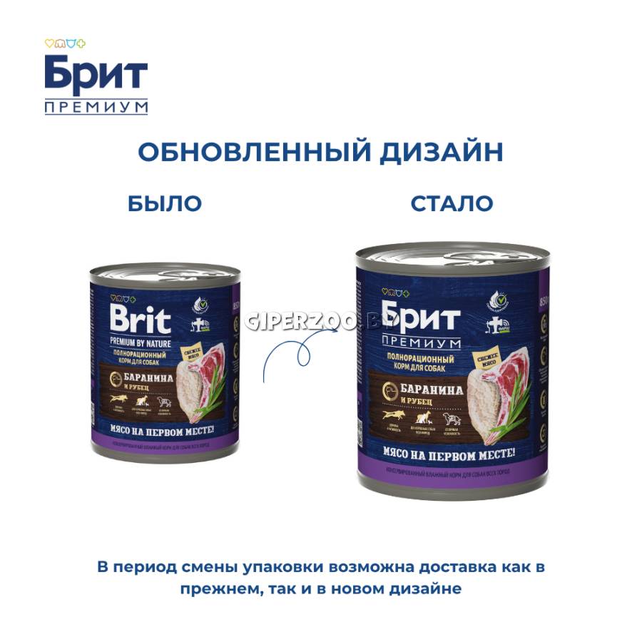 Брит Премиум Консервы для взрослых собак всех пород с бараниной с рубцом Dog Adult (Brit Premium) - полнорационный влажный консервированный корм премиум-класса.