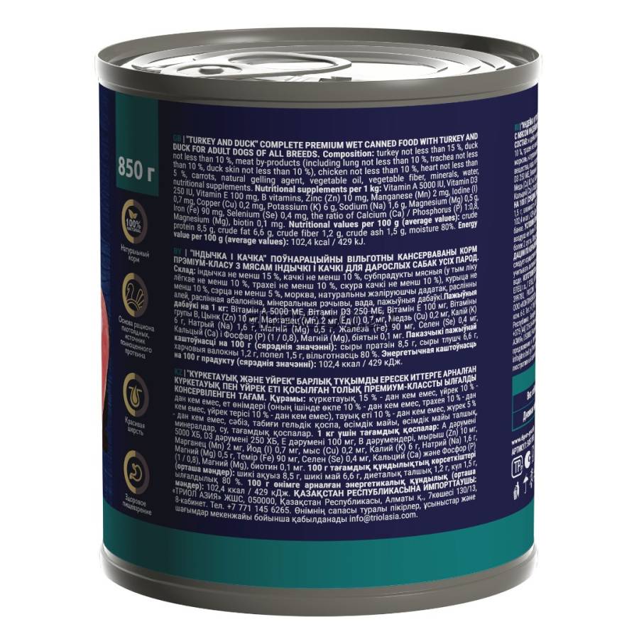 Свежее мясо индейки с добавлением утки гарантирует потрясающий вкус и соблазнительный аромат, который понравится вашей собаке. Пребиотики, содержащиеся в корме, обеспечивают здоровое пищеварение, а витамины и минералы поддерживают общее состояние здоровья питомца.