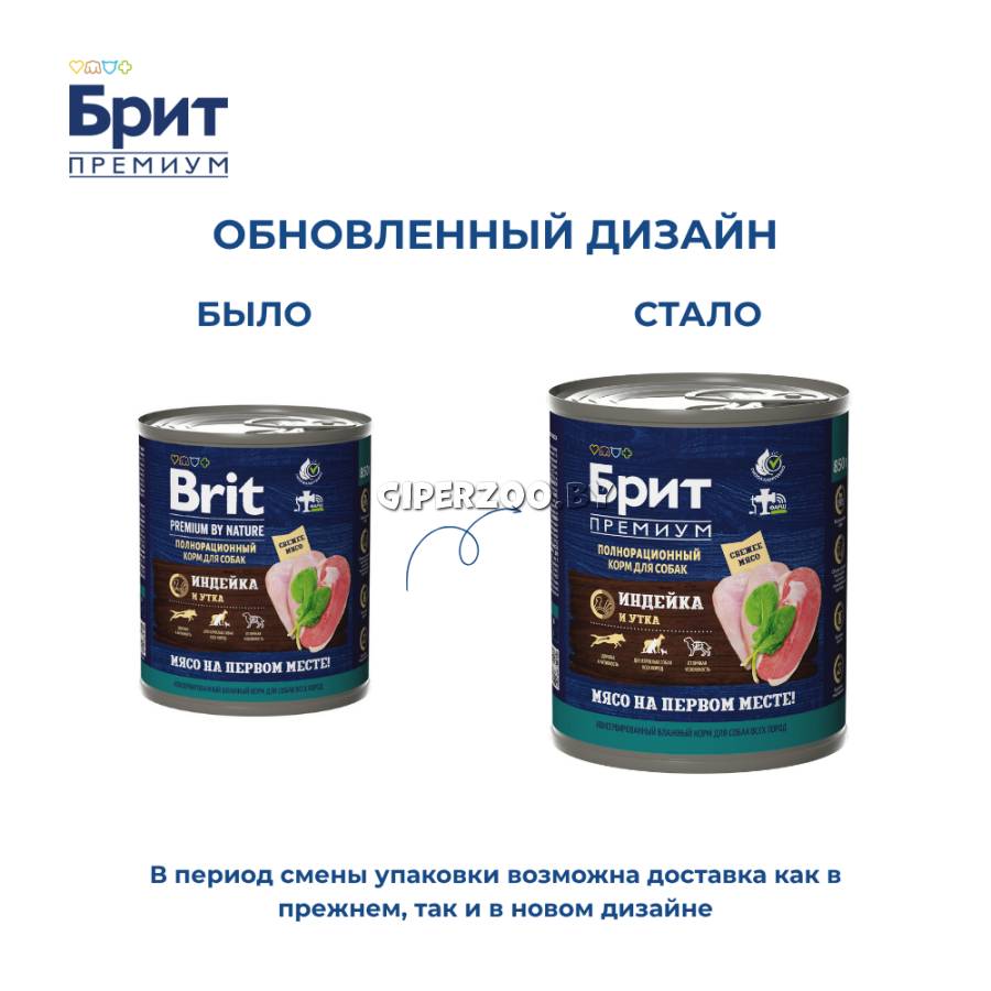 Брит Премиум Консервы для взрослых собак всех пород с индейкой и уткой Dog Adult (Brit Premium) - полнорационный влажный консервированный корм премиум-класса .