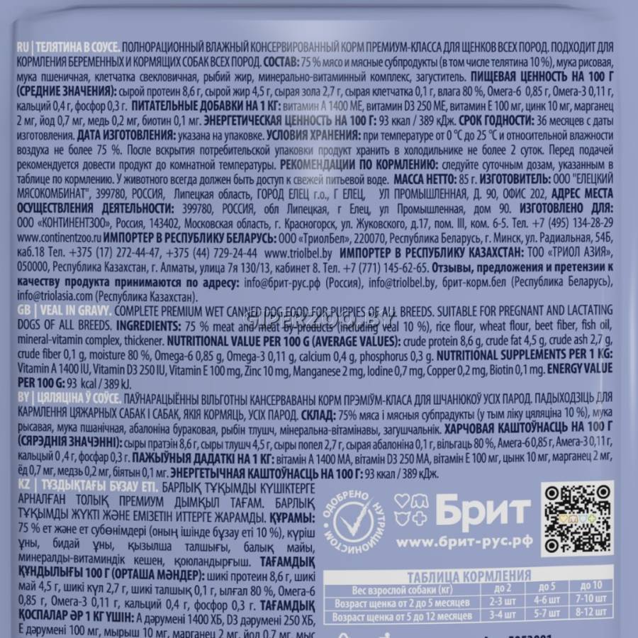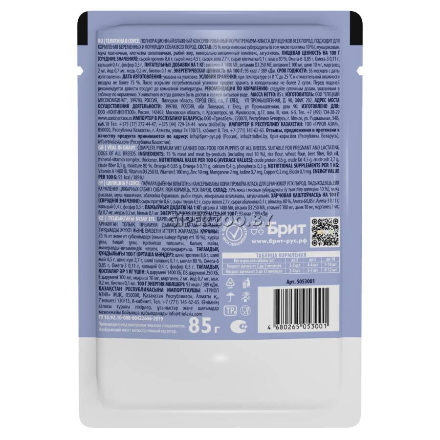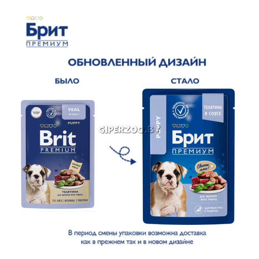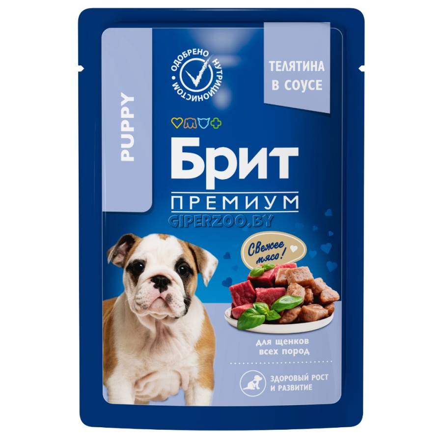 Брит Премиум Пауч для щенков всех пород с телятиной в соусе Dog Puppy (Brit Premium) - полнорационный влажный корм премиум класса.