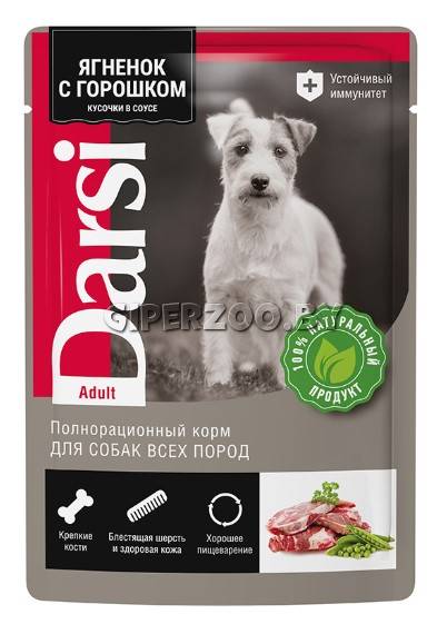 Darsi Adult Пауч для собак (Ягненок с зеленым горошком) - полнорационный влажный консервированный корм для собак всех пород.