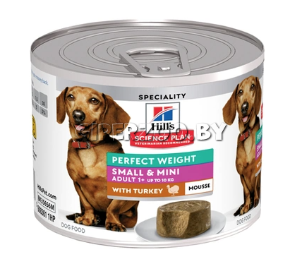 Влажный корм Hill's Science Plan Small&Mini Perfect Weight Мусс с индейкой - полноценный рацион с мягкой и нежной текстурой для взрослых собак мелких и миниатюрных пород в возрасте от 1 до 6 лет с небольшим избыточным весом или склонностью к набору веса