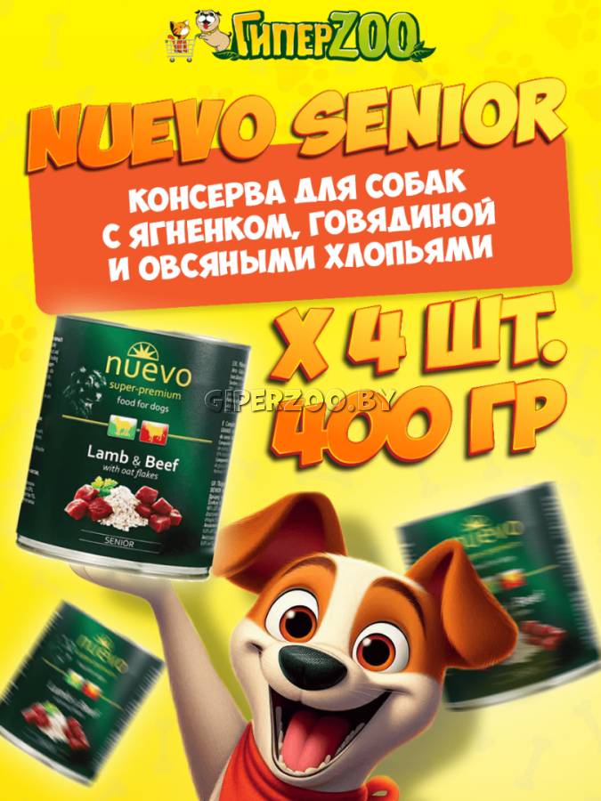 Nuevo Senior с ягненком и говядиной, 400 гр*4шт - предназначены для собак старшего возраста.