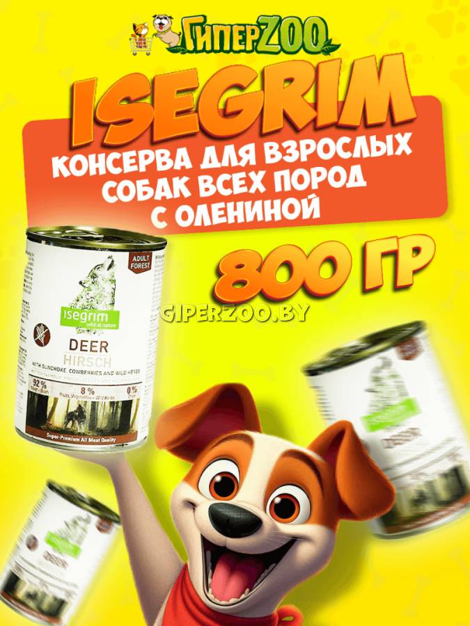Isegrim FOREST консервы для собак оленина с топинамбуром, брусникой и дикими травами, 800 гр - полноценный консервированный корм для взрослых собак всех пород супер-премиум класса с олениной, топинамбуром, брусникой и и дикими пряными травами.