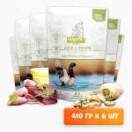 Isegrim Roots с лососем и форелью, 410 гр*6 шт создан на основе изначальной диеты предка всех собак – волка; натуральные ингредиенты придают корму неповторимый вкус. Высокое содержание мяса (70%) в сочетании с богатыми витаминами овощами, питательными маслами и отборными дикорастущими травами.