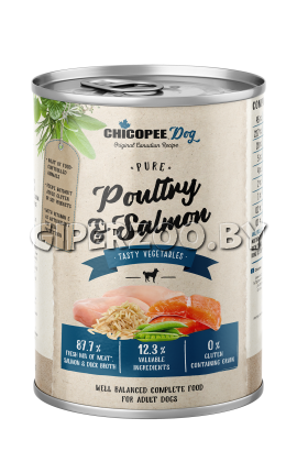 Chicopee Adult (Домашняя птица с рыбой), 400 гр. - это влажный корм для взрослых собак всех пород с домашней птицей и рыбой.