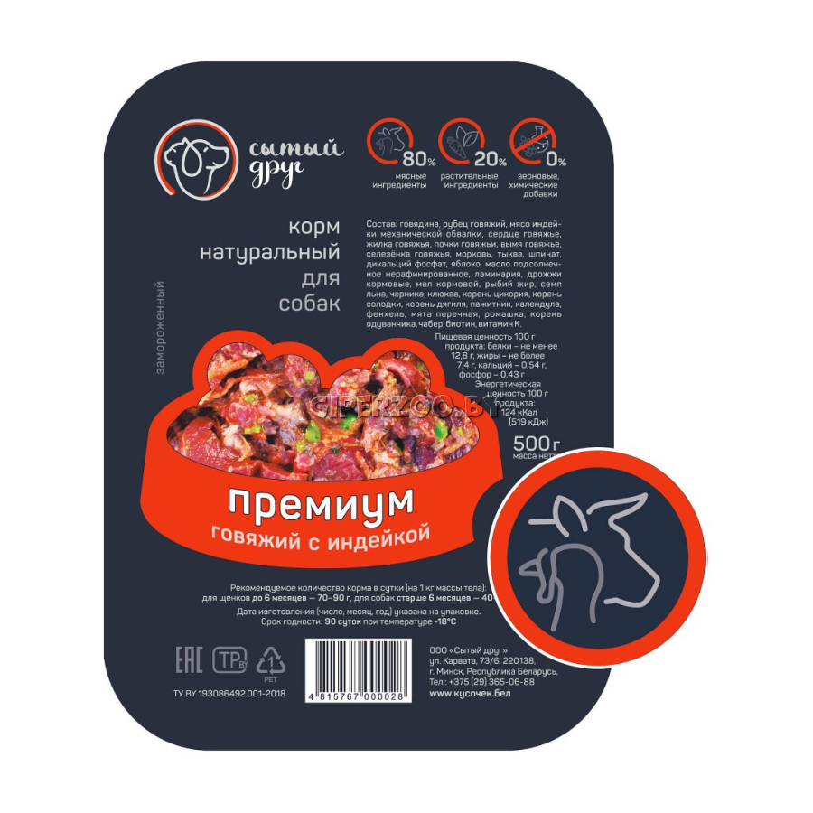 Корм для собак «Супер-Премиум» говяжий с индейкой, 500 г