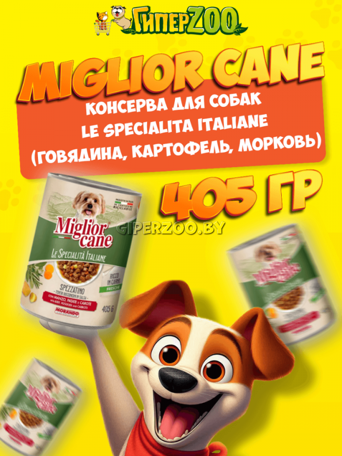 Miglior cane Le Specialità Italiane (говядина, картофель, морковь) - это сбалансированный влажный корм для всех пород.